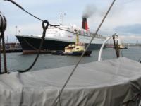 Ångbåtstur med S/S Bohuslän för att följa kryssningsfartyget Queen Elisabeth II till havs från Scandiahamnen i Göteborg.