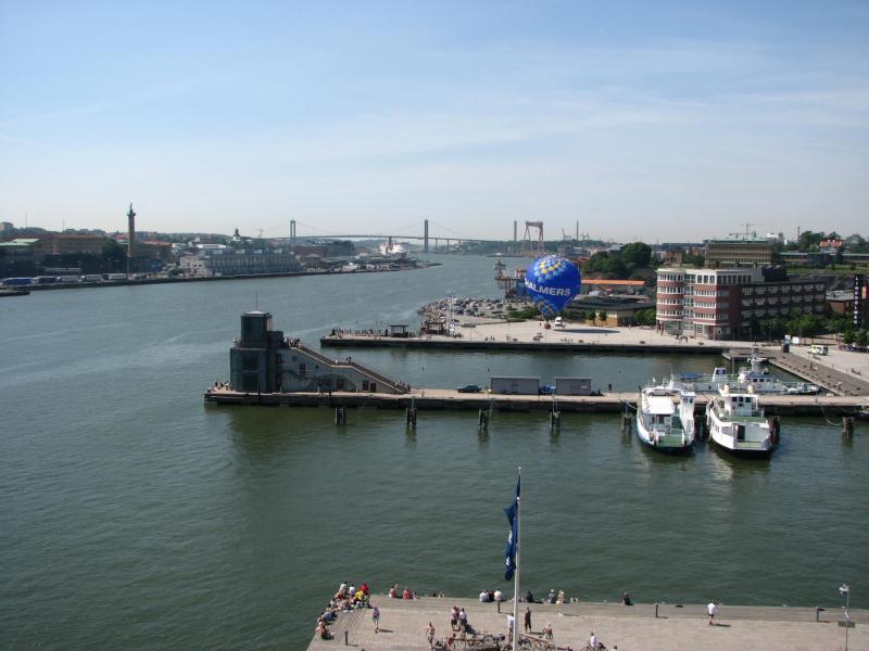 2007-06-09 Götheborg passerar i detta nu under Älvsborgsbron, dock skymd av Stenas tysklandsbåtar.