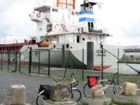 I Bremerhaven letar vi oss ner färjan över till Blexen (Nordenham) . Sedan är det bara 14 km kvar att cykla innan vi är framme i Nordenham och vid vårt hotel för natten som är Hotel Küste Garni. Eftersom det är helgdag så måste vi checka in och hämta nyckeln på grannhotellet, Hotel am Markt, ett par kvarter bort (skylten på dörren pekar dock i motsatt riktning till var systerhotellet ligger). Vi fick en liten svit med dubbelsäng i det stora rummet och en enkelsäng i det mindre rummet. Dagen middag blir också den på Hotel am Markt, var restaurang kan rekommenderas (en riktigt bra röd Tysk Pinot-Noir till maten (asiatisk anka, ryggbiff)). Vi ville gärna ha ett fönsterbord men de var alla upptagna så vi fick slå oss ner i mitten. Men så snart det blev ett fönsterbord ledigt fick vi flytta dit (mellan förrätt och huvudrätt).