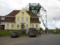 En god lunch intogs i Glückstadt på samma restaurang som förra året (Restaurang Kandelaber). Fullt med folk som avnjöt deras Matjesbuffet, själva föredrog vi spättan med "speck" (dvs stekt tärnat bacon). Efter lunch tog vi färjan från Glückstadt över till Wischhafen på sydsidan av Elbe och sedan cyklar vi 17 km till Tysklands äldsta hängfärjan som finns i Osten.