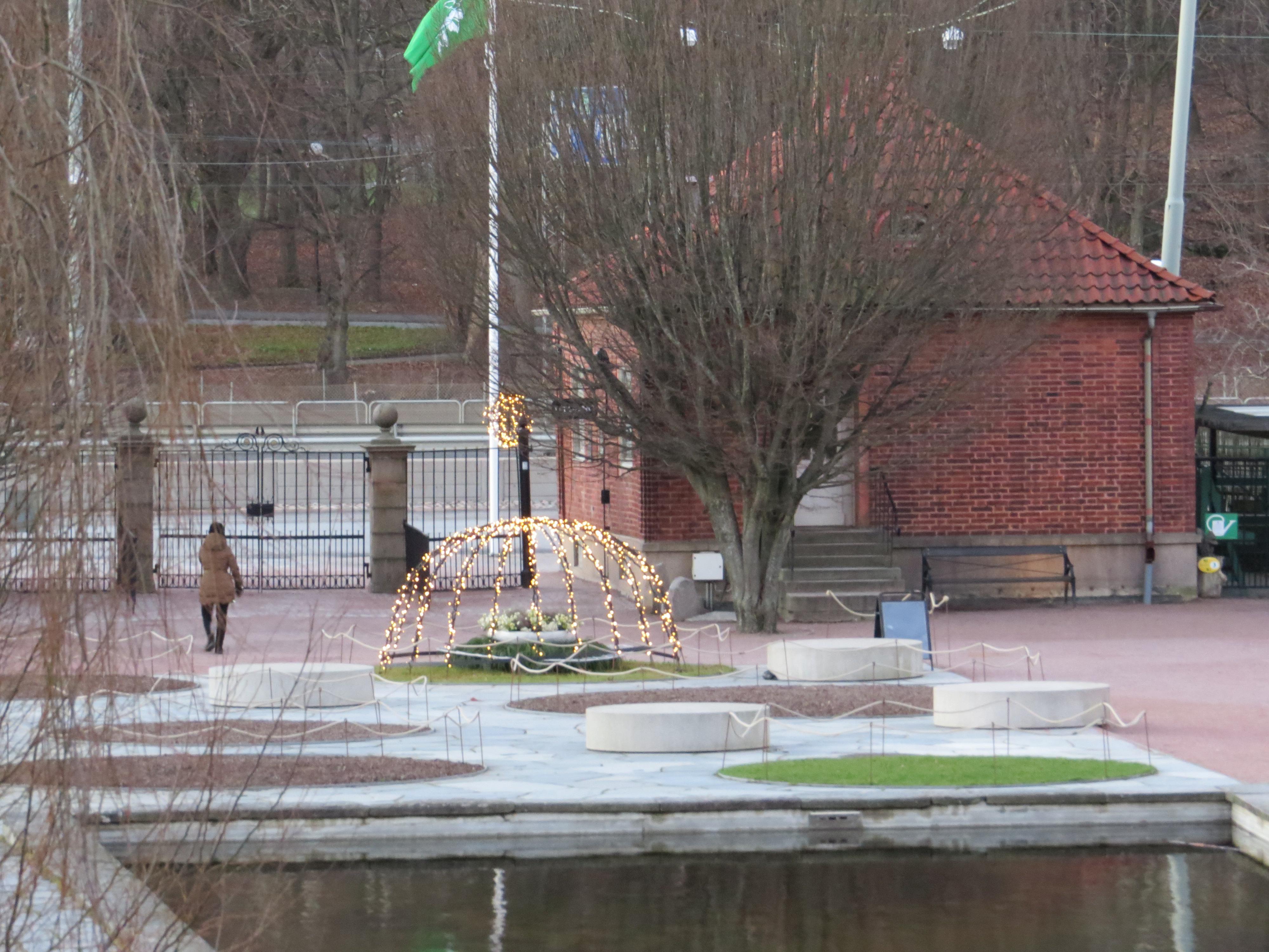 2014-01-12 Entreen med julbelysningar.