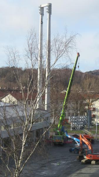 2015-03-30 Dag att montera belysningen på Rambergsvallens pyloner.
